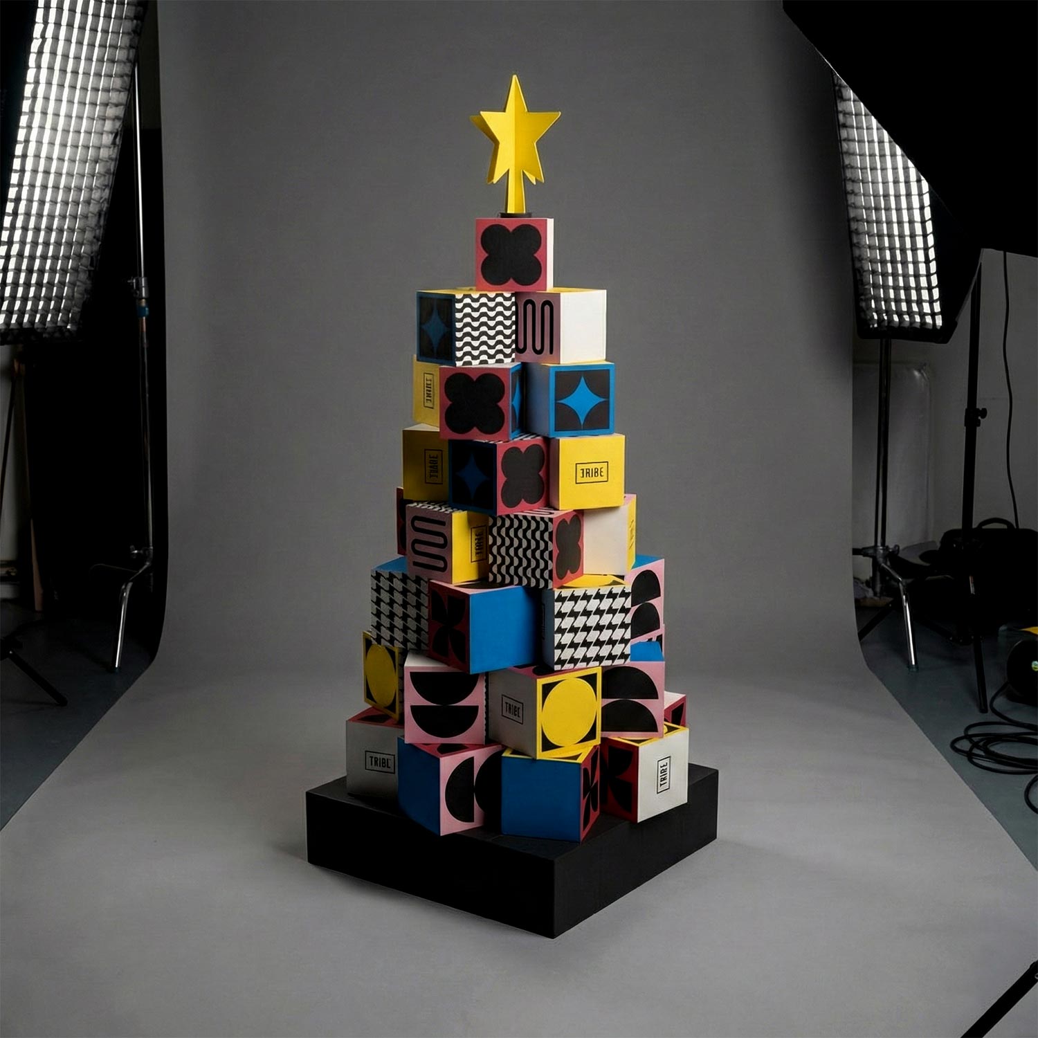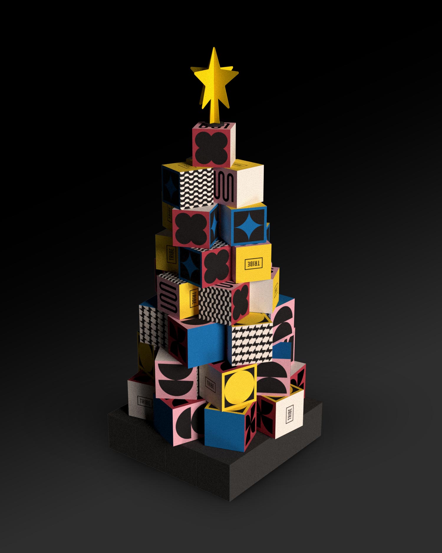 Accor ci ha chiesto di reinterpretare il concetto classico di albero di Natale per adattarlo all’identità audace, urbana e anticonformista del brand TRIBE. L’obiettivo non era solo decorativo, ma strategico: creare un oggetto di design che fosse facile da produrre, economico da spedire e semplicissimo da montare per lo staff degli hotel, senza rinunciare all’impatto visivo “Wow”.